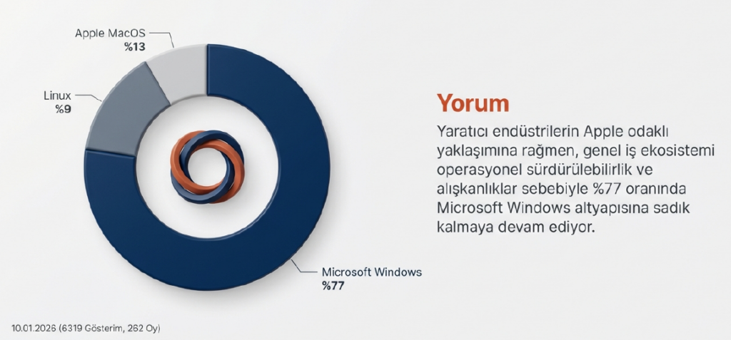 Hangi işletim sistemini kullanıyorsunuz diye sordum: %77 Microsoft Windows cevabı geldi.