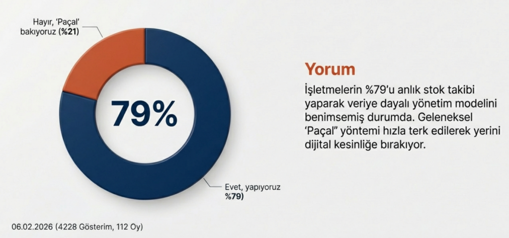 Stok takibi yapıyor musunuz diye sordum: %79 Evet Yapıyoruz cevabı aldım.