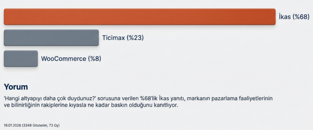 Hangi E-Ticaret altyapısını daha çok duydunuz diye sordum, cevap verenlerin %68’i ikas dedi.