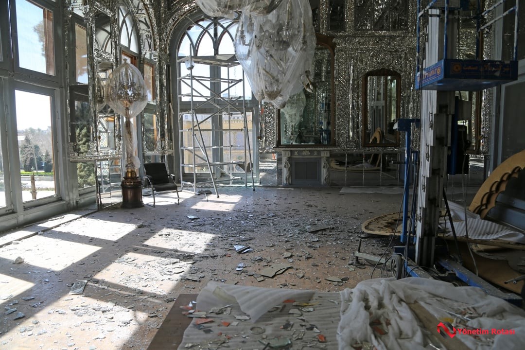 Olay yerinden gelen görüntülerde, Gülistan Sarayı’nın ünlü Aynalar Salonu’nun parçalandığı, süslemelerin kırık parçalarının zemine saçıldığı görüldü.