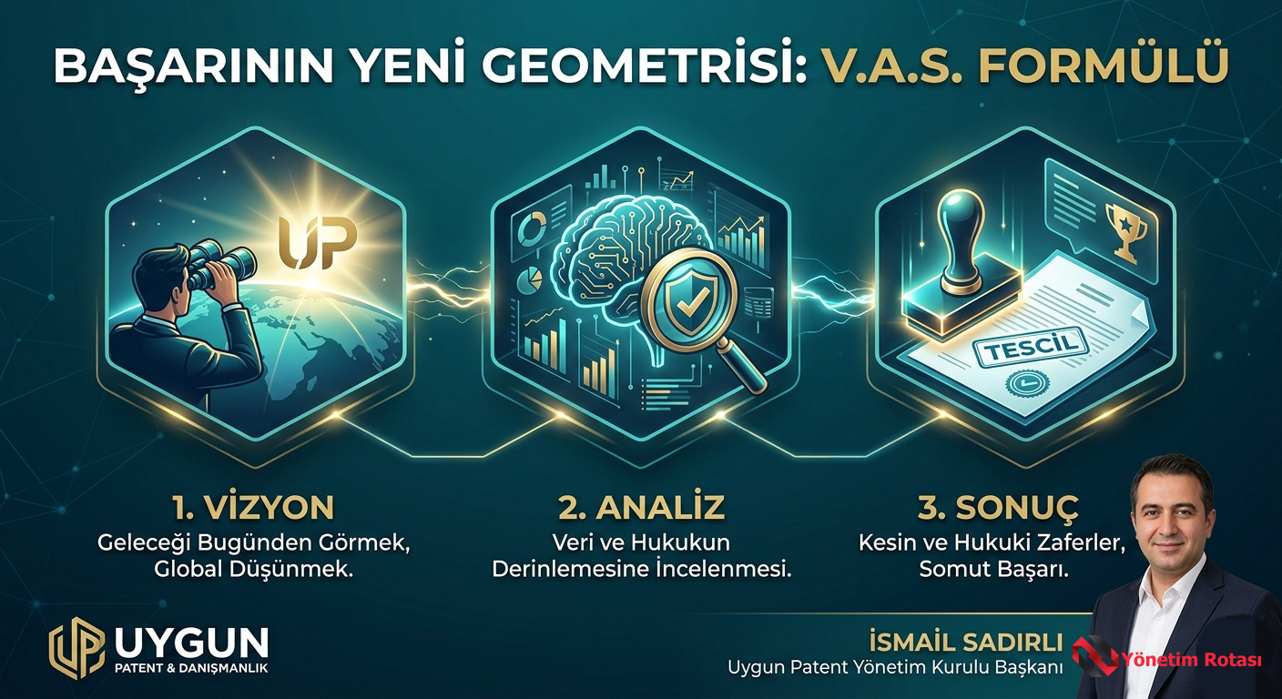 Yıllardır fikri mülkiyet ve marka tescili alanında edindiğim tecrübeler, beni ve dijital strateji ortağımı (yapay zeka vizyonumuzu) ortak bir paydada buluşturdu. Kemal Kırıkkanat’ın değerli “HAP” (Hırs, Akıl, Pragmatizm) öğretisinden ilham alarak, bu felsefeyi bir adım öteye, Uygun Patent’in kurumsal DNA’sıyla birleştirdik: VAS Formülü.
