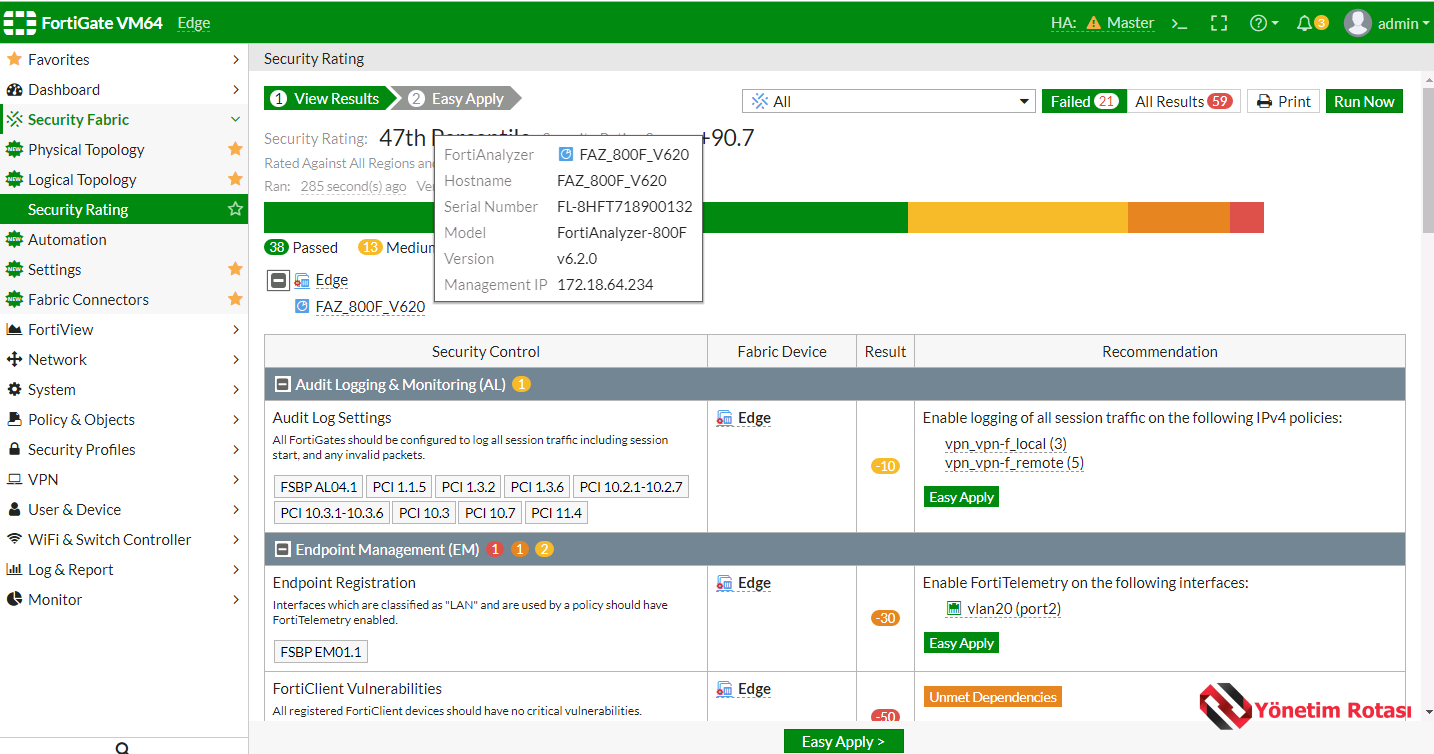 Zafiyetlerin saptanması: Fortianalyzer, ağ içindeki güvenlik zafiyetlerini fark etmenize yardımcı olur. Bu boşluklar, ağınıza yönelik potansiyel tehditleri anlamanızı ve onları ortadan kaldırmanızı sağlar.