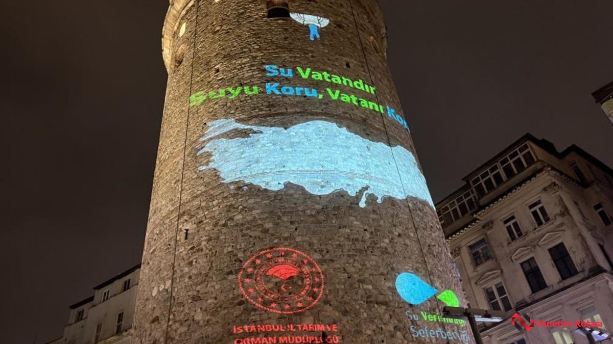 İstanbul İl Tarım ve Orman Müdürlüğü, 22 Mart Dünya Su Günü kapsamında başlatılan ‘Ulusal Su Verimliliği Seferberliği’ çerçevesinde Galata Kulesi’ni etkileyici bir video ile aydınlattı. “Su Vatandır! Suyu Koru, Vatanı Koru” mesajının öne çıkarıldığı etkinlikte kuleye yansıtılan görsel sunum hem yerli halkın hem de yabancı ziyaretçilerin dikkatini çekerek farkındalık yaratmayı başardı.