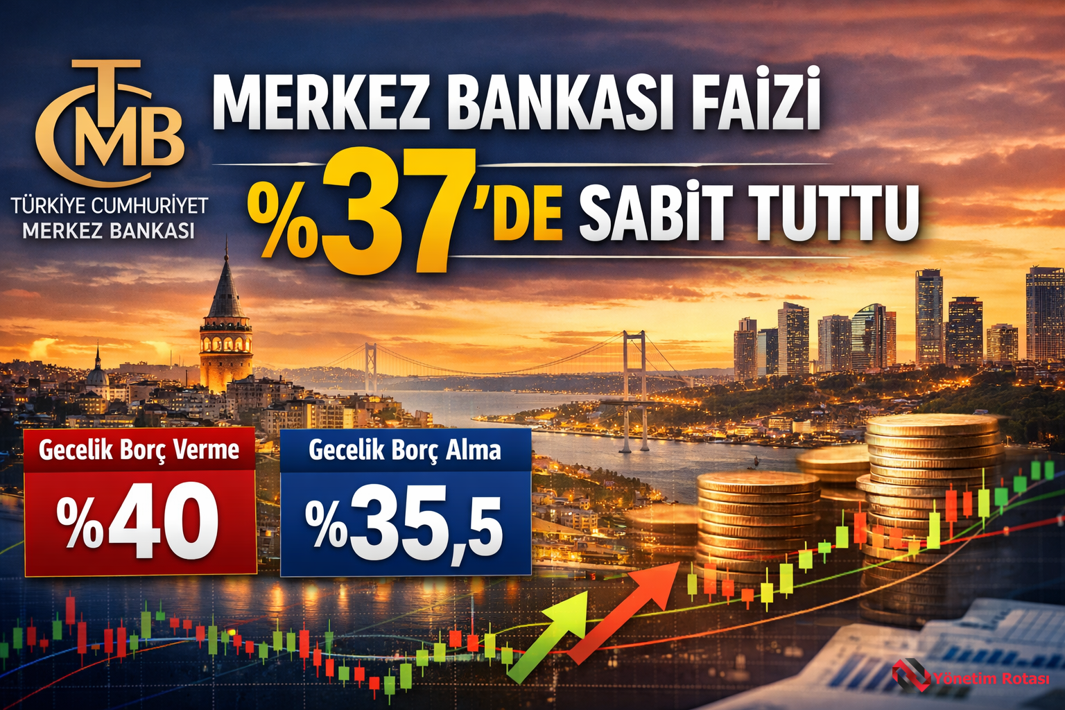 Türkiye Cumhuriyet Merkez Bankası (TCMB), Para Politikası Kurulu toplantısının ardından merakla beklenen faiz kararını açıkladı. Banka, politika faizini yüzde 37 seviyesinde sabit bırakırken, gecelik borç verme faizini yüzde 40, gecelik borç alma faizini ise yüzde 35,5 olarak korudu.