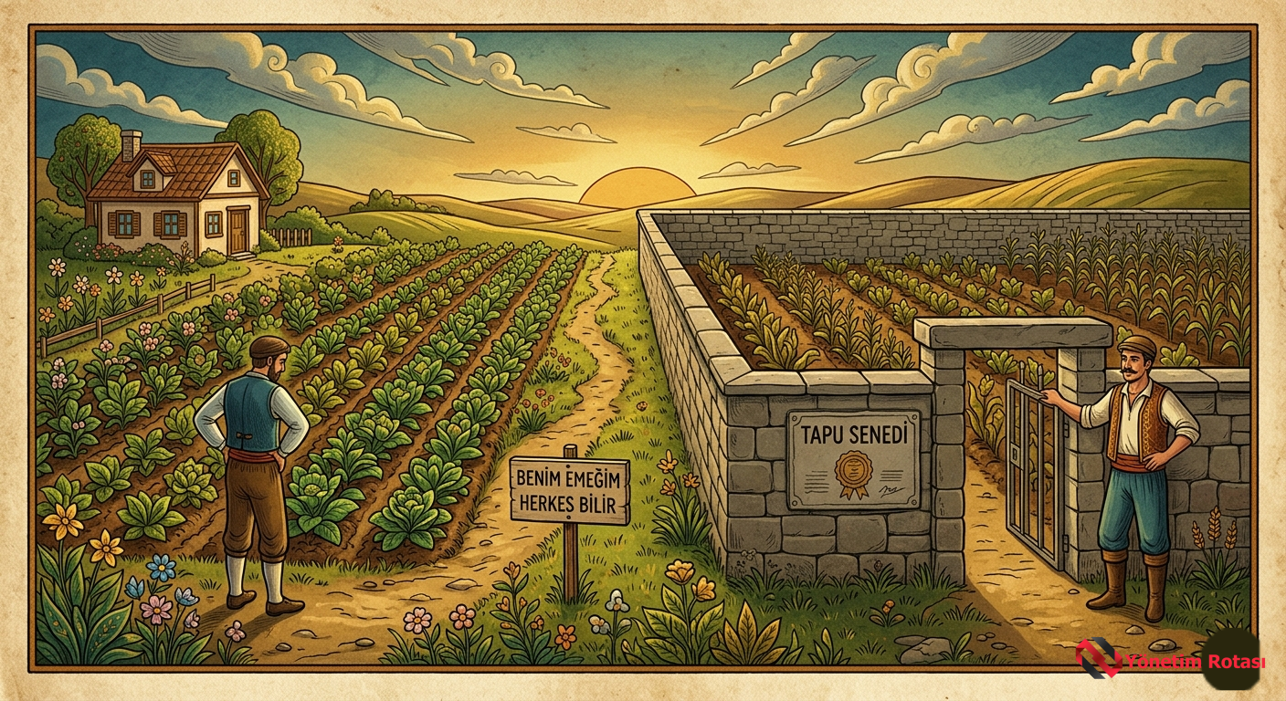 İkinci çiftçi ise daha az mahsul alsa da, önce gitmiş tarlasının sınırlarını mülkiyet kayıtlarına işletmiş, taşlarla sağlam bir duvar örmüş ve her karışını mühürletmiş.