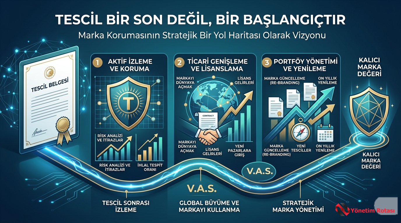 V.A.S. (Vizyon, Analiz, Sonuç) formülümüzün “Vizyon” ayağı, tescil sonrası süreci şu üç temel strateji üzerine inşa eder: