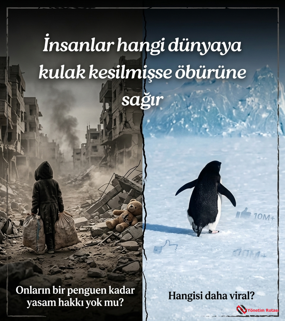 İnsan hakları savunucuları, “yaşam hakkı kutsaldır” diyen kurumlar ve dijital aktivistler nerede? Eğer bir penguenin hayatı, bir çocuğun hayatından daha fazla etkileşim alıyorsa, orada bir “yönetim hatası” değil, tam bir ahlaki çürüme vardır. Dikkatimizi nereye vereceğimizi algoritmalar belirliyor olabilir ama vicdanımızı hangi tarafa çevireceğimize biz karar veririz.